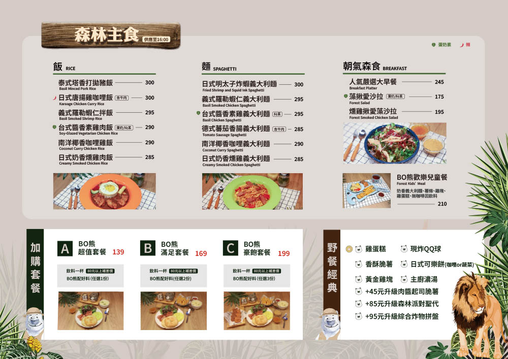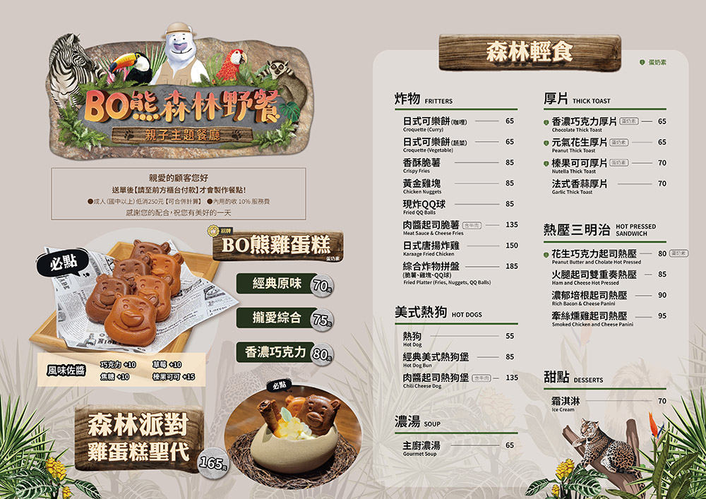 BO熊森林野餐-親子餐廳 2026-03-31 BO熊森林野餐-親子餐廳營 / 業 / 時 / 間每日10:00~17:00(最後點餐時間-16:00) 週二、週三公休 (國定連假、春節及寒暑假期間無公休日)